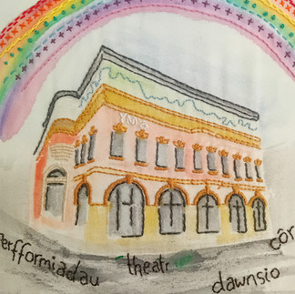 A series of textile artworks inspired by loved and lost buildings of Pontypridd, created in paint, stitch, applique and paper. Exhibition held in Canolfan Calon Taf, Ynysangharad Park March 2024.